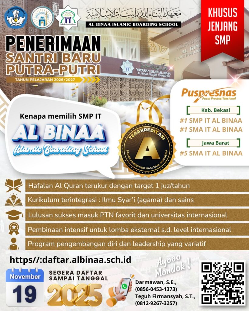 Telah Terakreditasi Universitas Islam Madinah dan Terakreditasi A (Unggul) untuk Tingkat SMP dan SMA